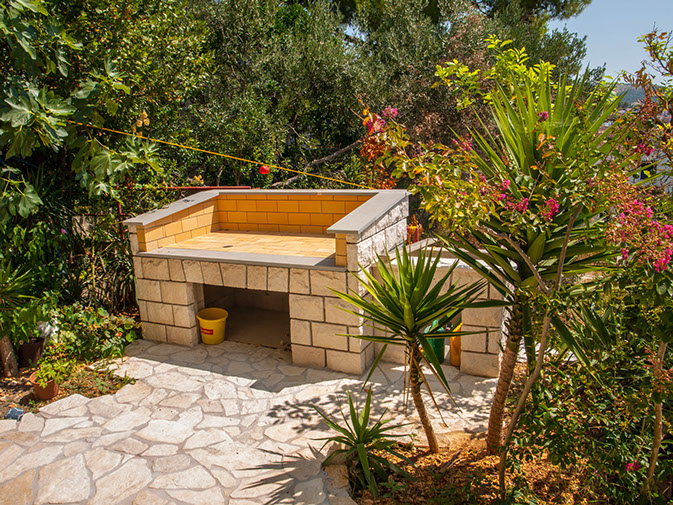 In the yard, surrounded by greenery and shade of olive trees, there is a great barbecue place.