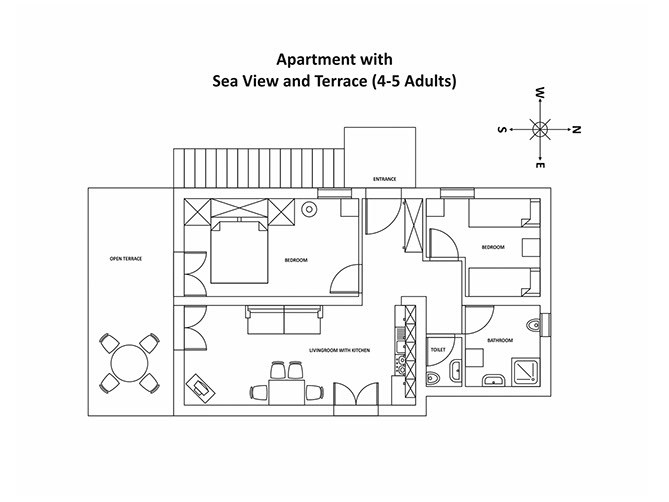 The apartment Gardenia disposes with one bedroom king bed, while the second bedroom has two single beds.