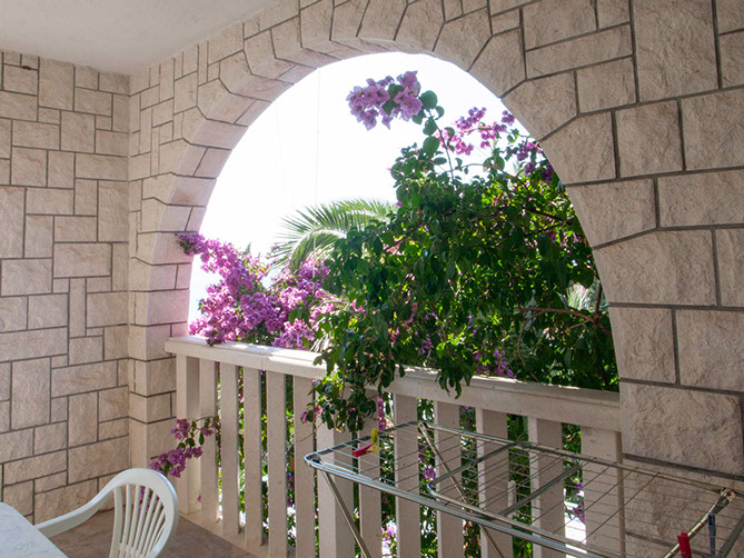 Its large terrace is shared with apartment Camelia, so these two apartments may be ideal for two families with children, friends or a larger group of guests.